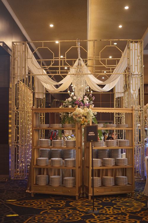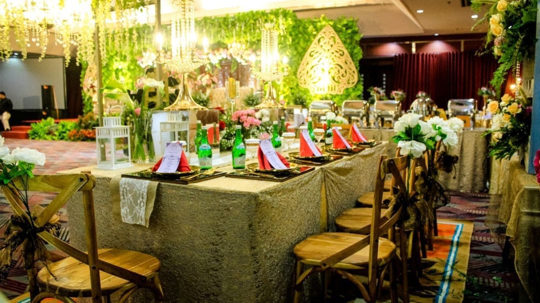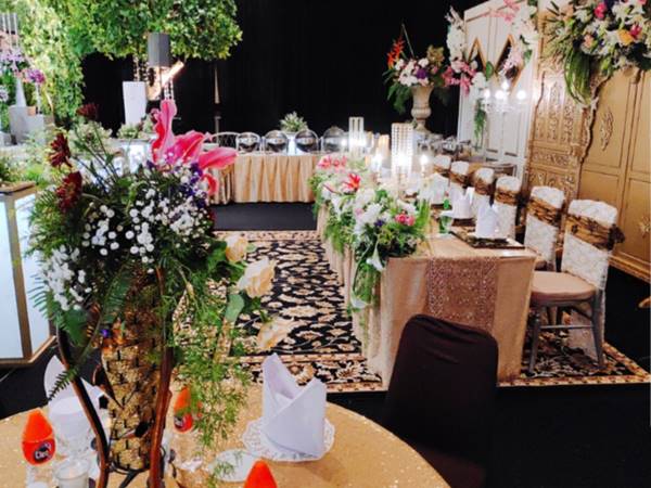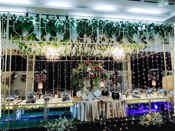 Set pelaminan dengan Artificial & Fresh Flower, Karpet Artificial Flower 60% & Fresh Flower 40% Taman Pelaminan Standard max 12 m Lighting Pelaminan, 1 Janur, 4 Kotak Uang , Karpet Jalan, 2 Meja Penerima Tamu, Gallery Foto, Selfie Area, 4 Buku Tamu + Pulpen Dekorasi Ruang Resepsi, Dekorasi Buffet, Dekorasi Stall, Dekorasi Meja Pengantin, Dekorasi Meja VIP, Dekorasi Panggung Musik, Dekorasi Area Selfie, Dekorasi Galeri Foto Peralatan & Service Catering, 1 Handbouquet, Nasi Punar dan Bakakak
